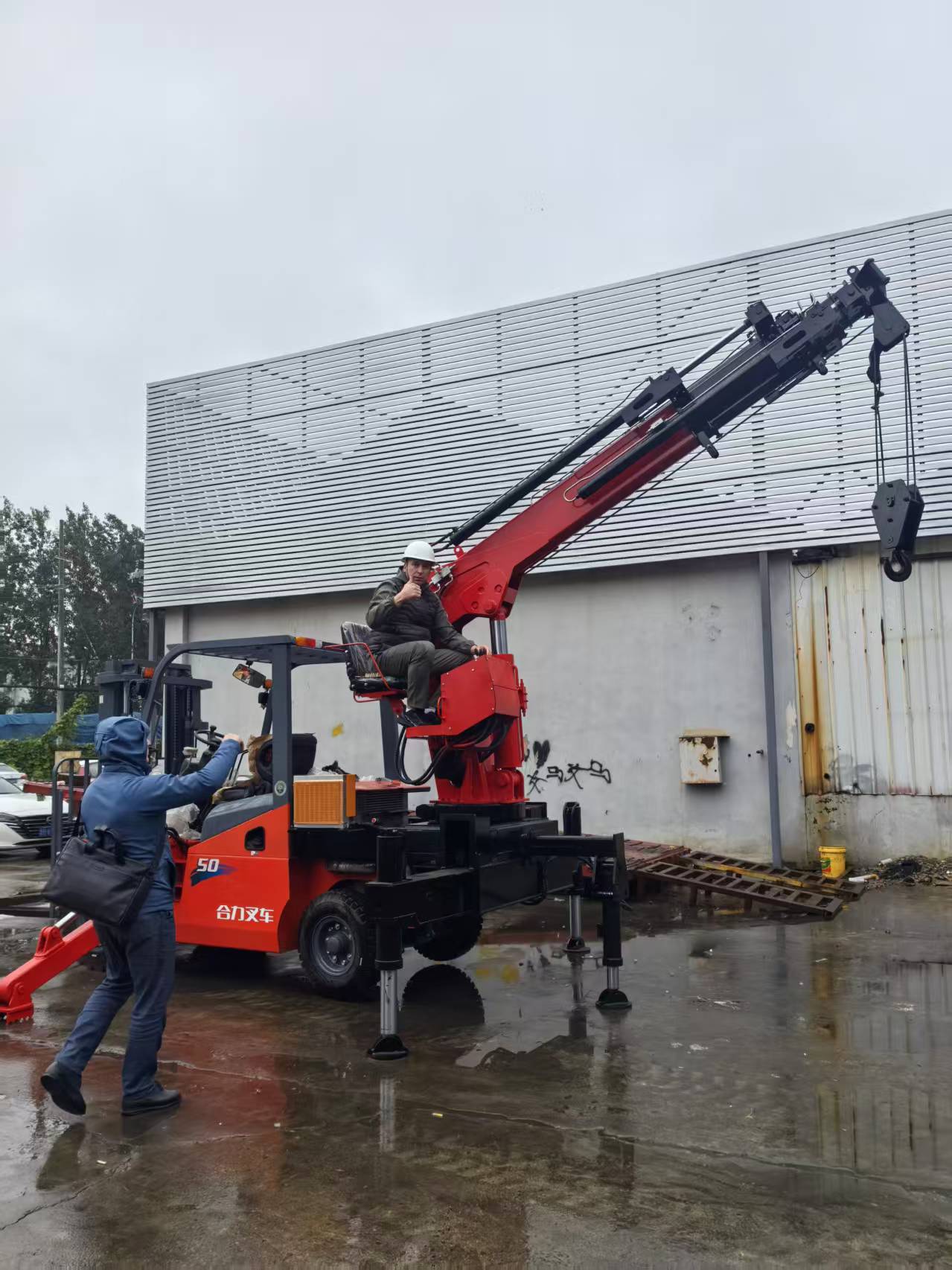 俄羅斯客戶親自測試星志重工吊裝機械-叉車尾吊后,伸出大拇指,給予充分的肯定、認可。還說出了:“星志重工,值得信賴!”