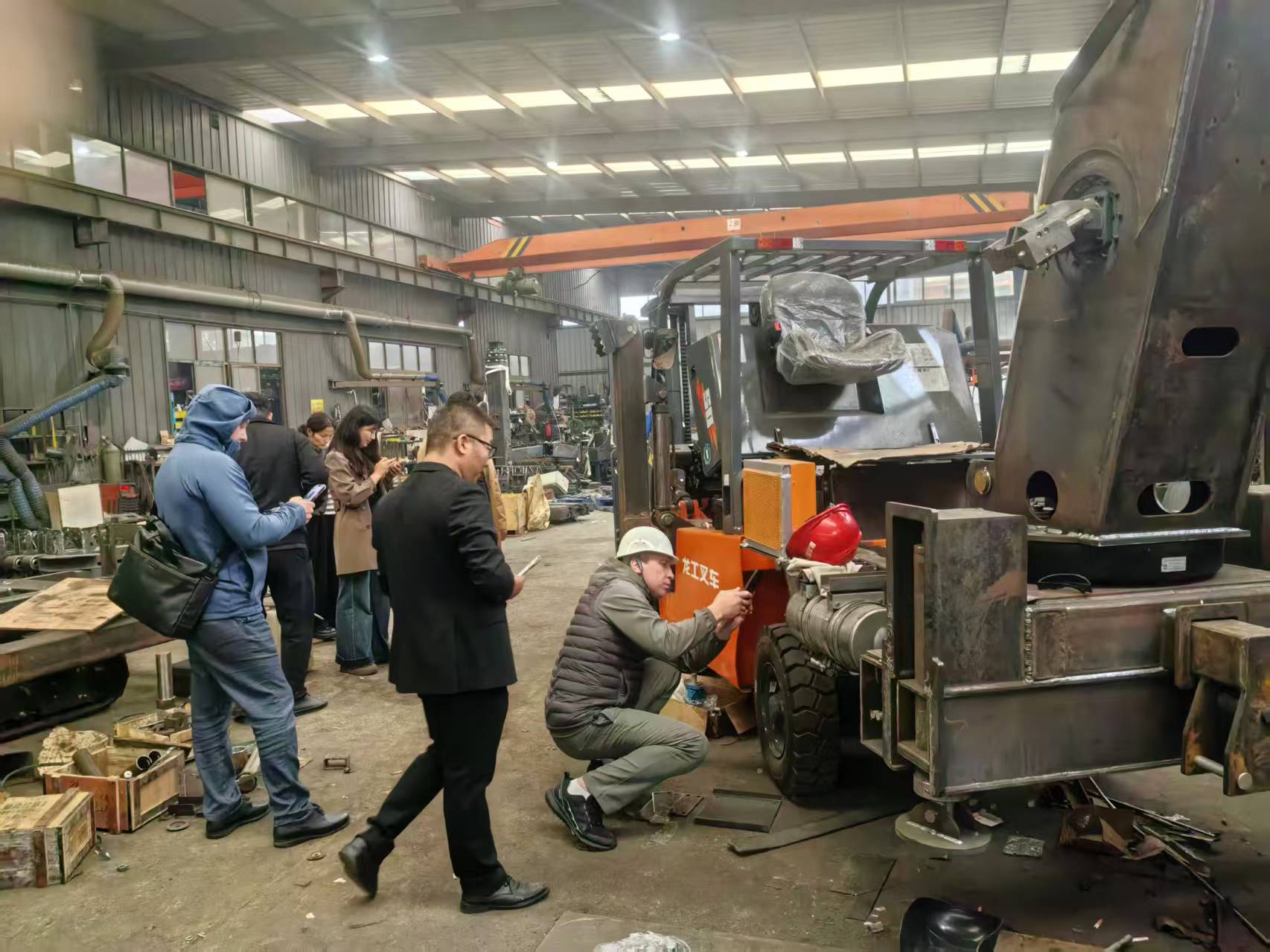 (俄羅斯客戶在星志重工生產(chǎn)車間實地考察,對星志品牌吊機產(chǎn)生濃厚的興趣)