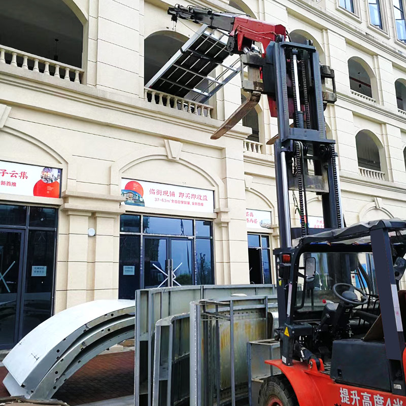 叉車飛臂吊可擺動(dòng)角度實(shí)現(xiàn)低空,高空取物。吊臂油缸驅(qū)動(dòng)伸縮實(shí)現(xiàn)設(shè)備貨物定位。